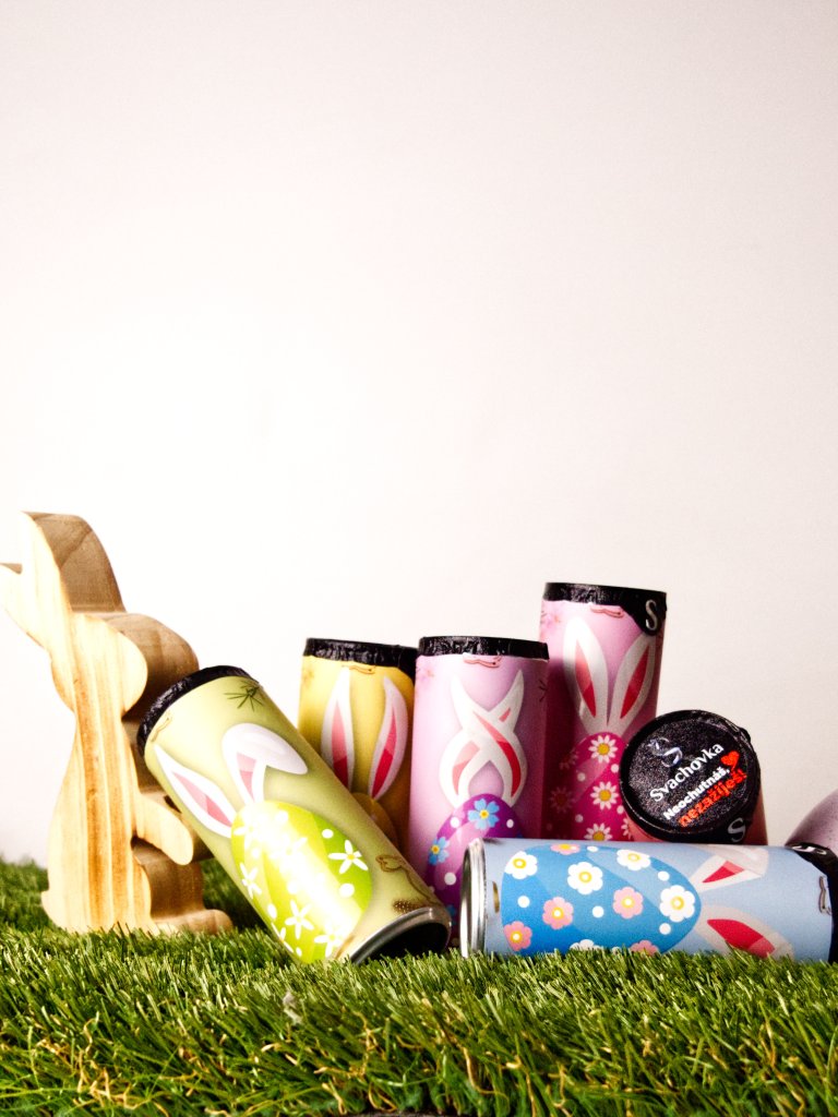 Takhle vypadá balíček, se kterým u svých koledníků zabodujete. Těm menším nabídněte klasické sladkosti. Těm větším nebo malé koledníky doprovázejícím nabídněte odměnu, na kterou nezapomenou. Parádně namíchaný drink. Navíc ve stylovém velikonočním balení.