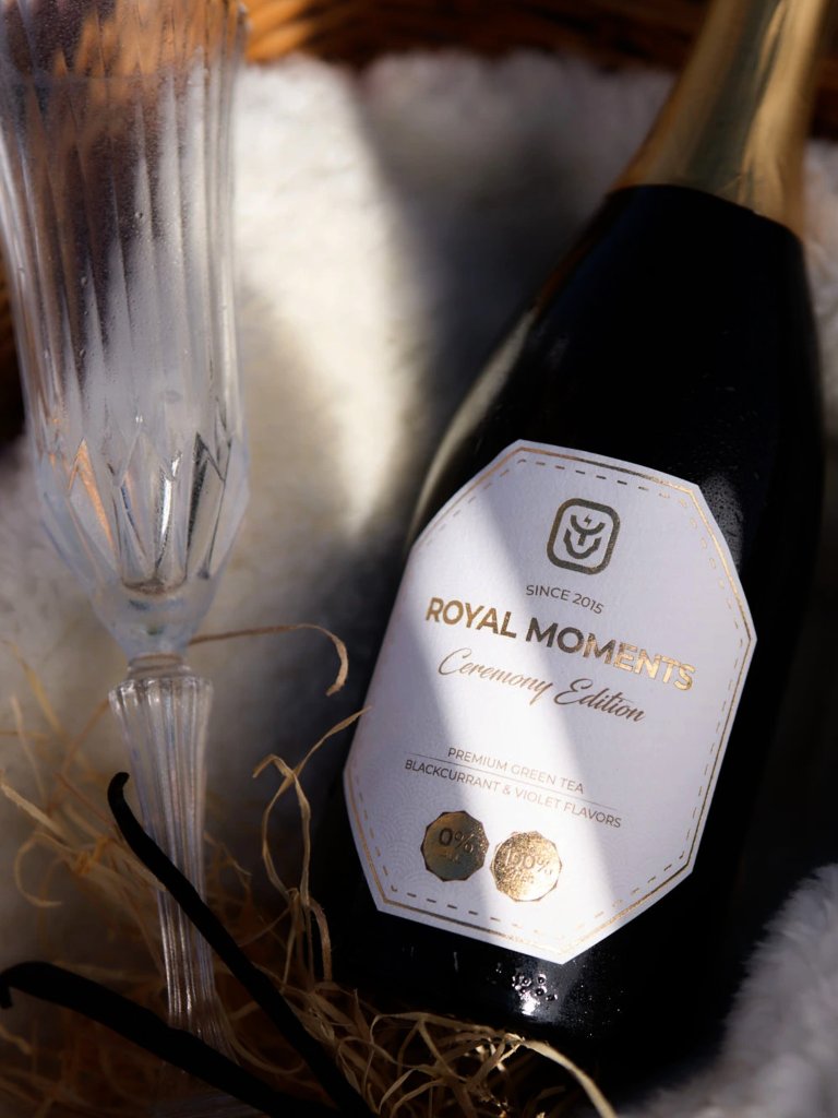 Zažijte výjimečný okamžik s Royal Moments – sofistikovaným nealkoholickým nápojem, který dokonale kombinuje zelený čaj, černý rybíz a jemné aroma fialky. Korkový uzávěr dodává nápoji slavnostní charakter – ideální pro každou slavnostní příležitost, ať už jste na elegantní večeři, firemním večírku nebo se jen tak bavíte s přáteli.