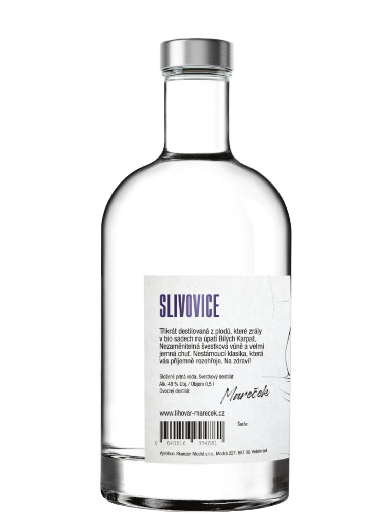 Slivovice Mareček je prvotřídní ovocný destilát s nezaměnitelnou a charakteristickou chutí a vůní. Stará odrůda durancie je pravou zárukou skutečné Slovácké slivovice.